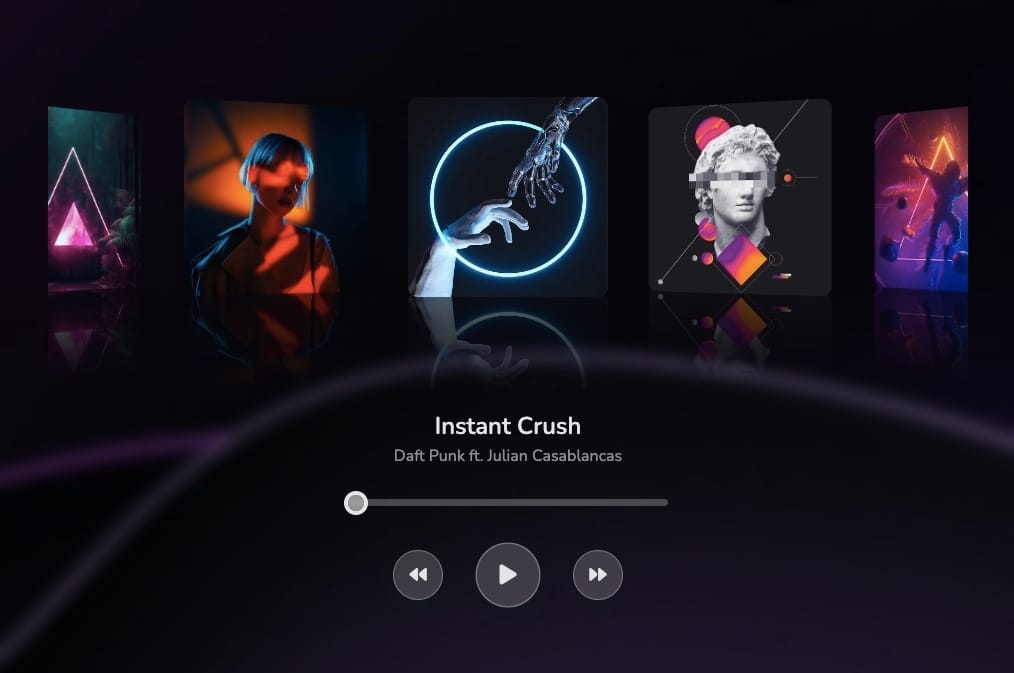 A music player integrated with Swiper.js for a sliding interface. Made by Ecem Gokdogan.